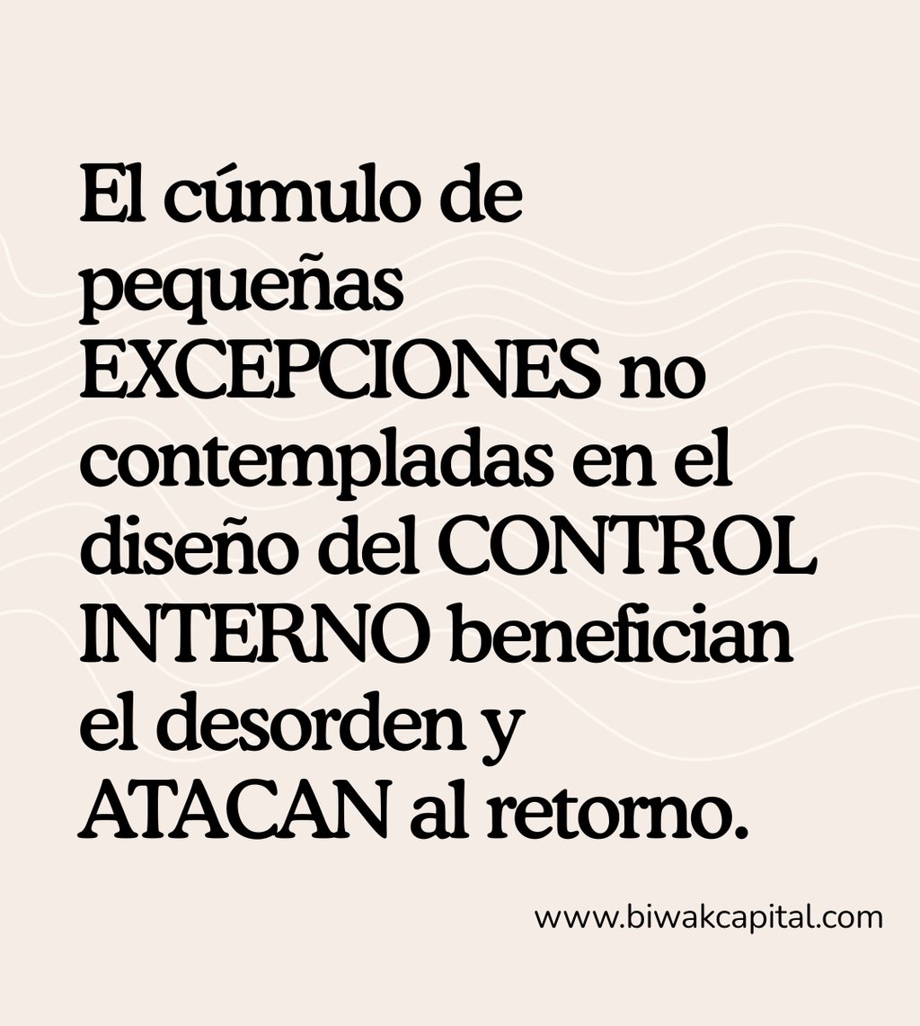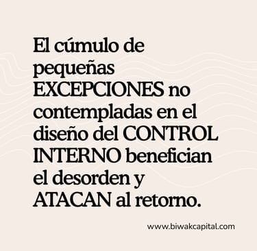 El CONTROL INTERNO no es una sugerencia, es el BLINDAJE del activo; cada EXCEPCIÓN es una falla de seguridad que se acumula y EROSIONA el margen. La flexibilidad sin protocolo es NEGLIGENCIA. En la arquitectura de capital, el retorno se salvaguarda con disciplina y con método, no con buenas intenciones.