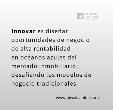 Innovar es diseñar oportunidades de negocio de alta rentabilidad en océanos azules del mercado inmobiliario, desafiando los modelos de negocio tradicionales