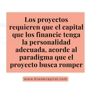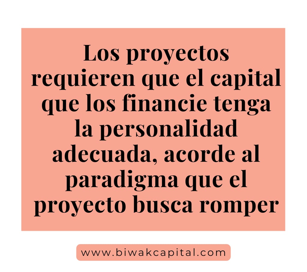 Los proyectos requieren que el capital que los financie tenga la personalidad adecuada, acorde al paradigma que el proyecto busca romper