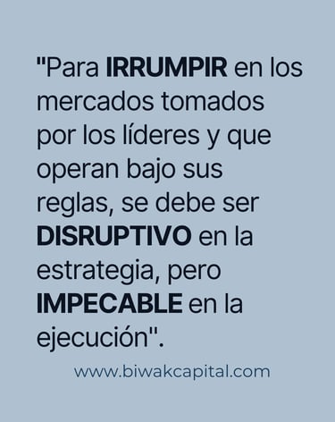 Para IRRUMPIR en los mercados tomados por los líderes y que operan bajo sus reglas, se debe ser DISRUPTIVO en la estrategia, pero IMPECABLE en la ejecución