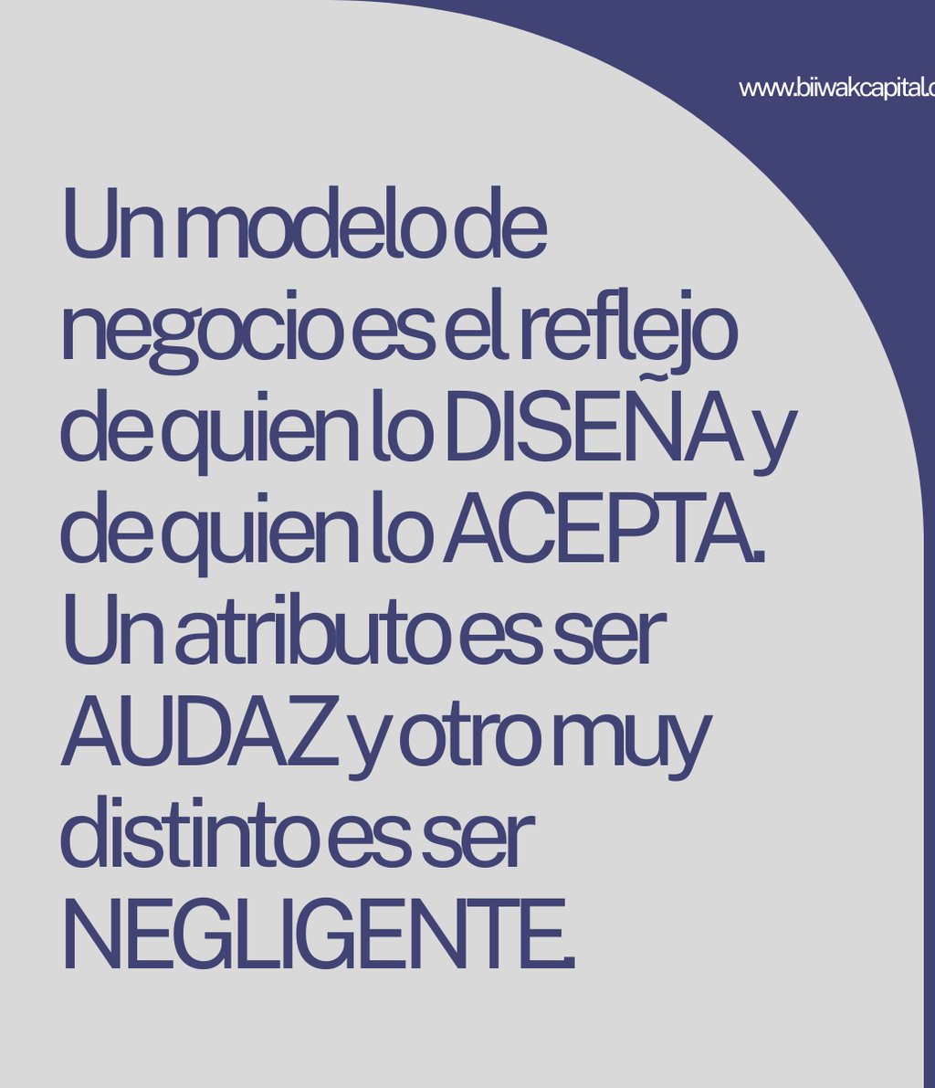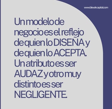 Un modelo de negocio es el reflejo de quien lo DISEÑA y de quien lo ACEPTA. Un atributo es ser AUDAZ y otro muy distinto es ser NEGLIGENTE.
